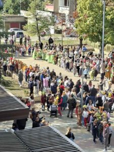 Након припрема, уследио је свечани дефиле кроз школско двориште. Малишани су са поносом прошетали међу посетиоцима, показујући своје маске и уживајући у аплаузима и осмесима публике. Двориште је било испуњено смехом, музиком и топлом атмосфером која је подсетила све присутне колико су дечја радост и заједништво драгоцени.